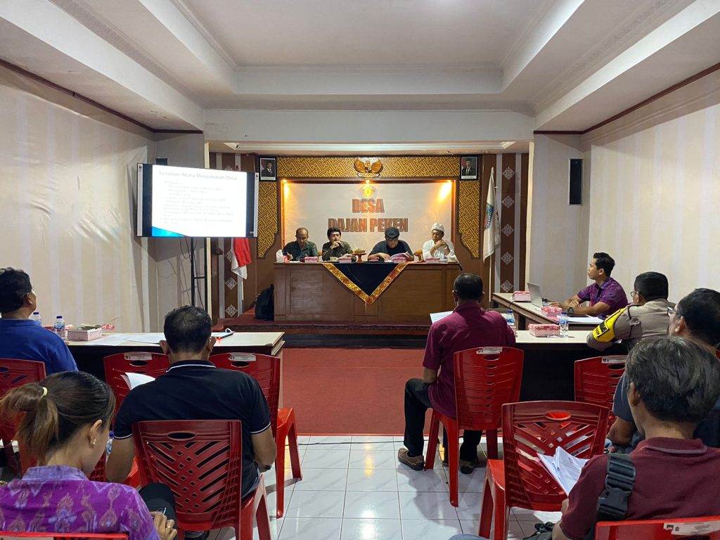 Musyawarah Desa berlangsung di Kantor Desa Dajan Peken pada pukul 15.00 wita sampai dengan selesai. Turut hadir Camat Tabanan yang dalam kesempatan ini diwakili oleh Sekretaris Kecamatan sekaligus membuka acara musyawarah desa secara resmi, didampingi Pendamping Desa Kecamatan Tabanan. Peserta musyawarah yakni Perbekel, BPD, Perangkat dan Staf unsur lembaga Desa dilingkungan Pemerintah Desa Dajan Peken, Bhabinkamtibmas dan Babinsa, serta tokoh masyarakat Desa.