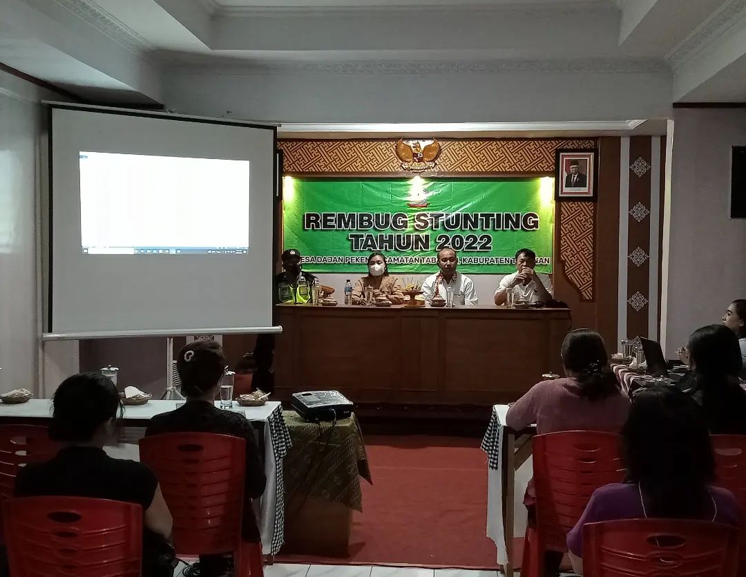 Acara berlangsung di kantor Desa Dajan Peken pada pukul 09.00 Wita sampai dengan selesai. Turut hadir Temaga Ahli Pemberdayaan Masyarakat Kabupaten Tabanan selaku narasumber pemaparan materi pencegahan stunting. Peserta rembug…