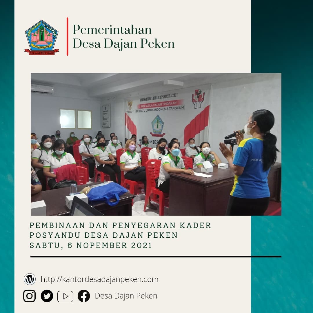 Pembinaan dan Penyegaran Kader Posyandu Desa Dajan Peken. Sabtu, 6 Nopember 2021. Acara berlangsung di ruang rapat Kantor Desa Dajan Peken pada pukul 09.30 Wita sampai dengan selesai.Penyegaran Kader Posyandu…